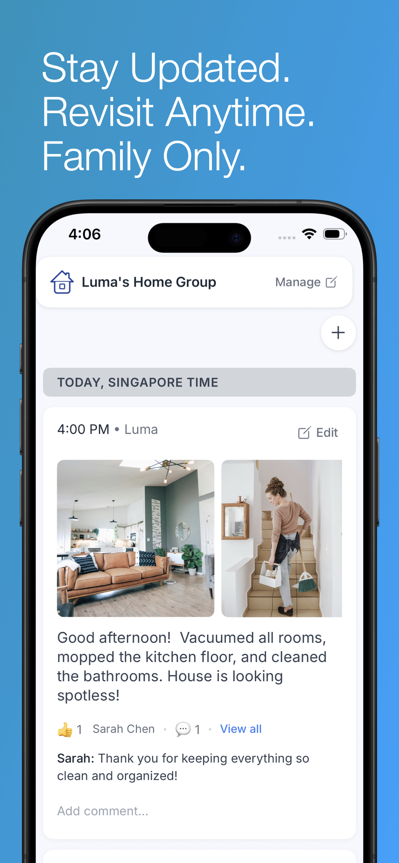Everyone in the home group gets instant updates and can check progress anytime — so coordination is seamless and efficient.