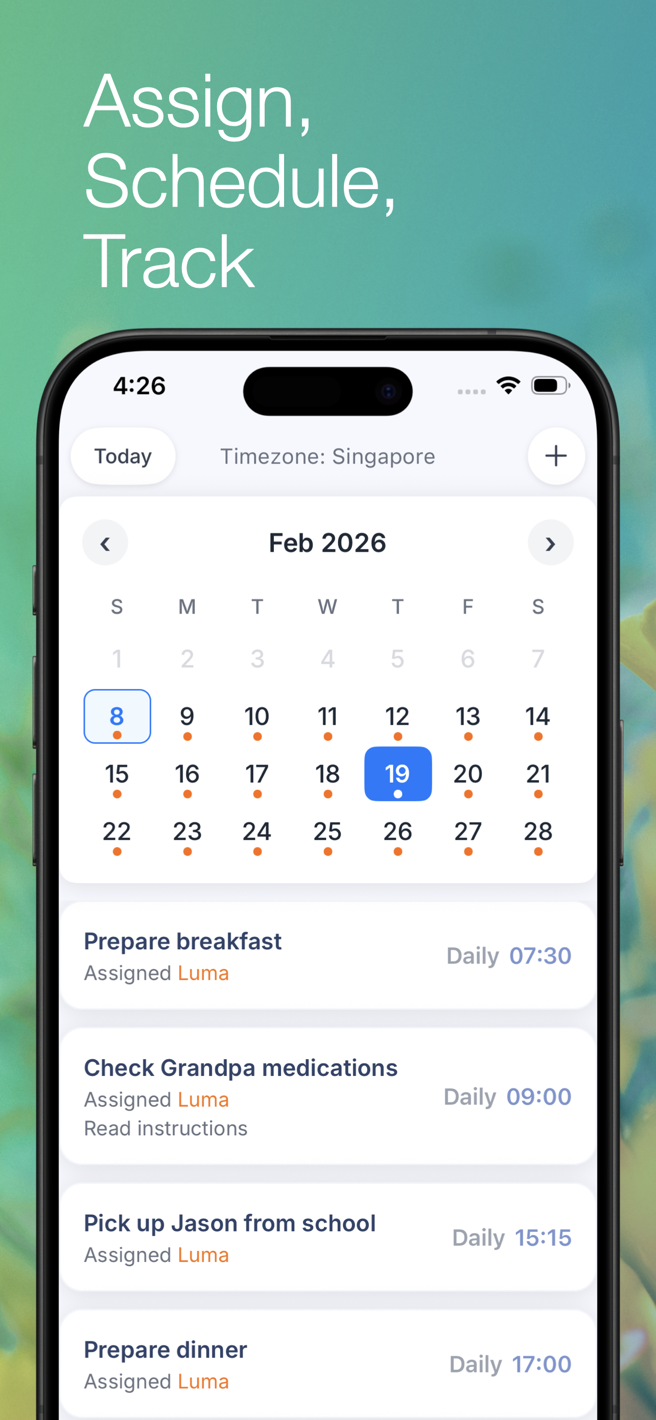 Create daily tasks for your home group, like cleaning schedules, maintenance checks, shopping lists, or routine updates.